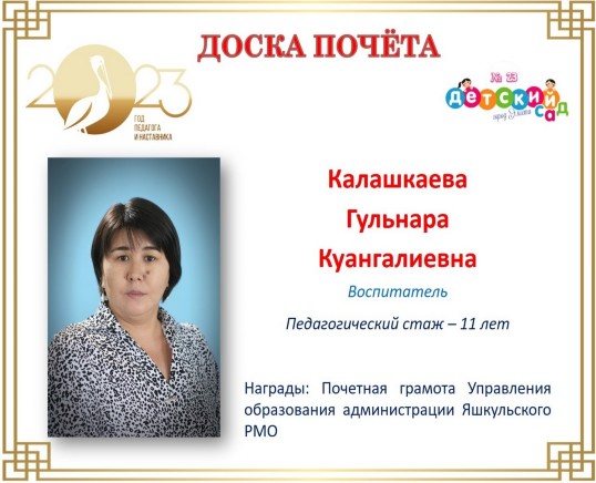 В Год педагога и наставника продолжаем рубрику электронной Доски Почета. Мы хотим рассказать о воспитателе этнокультурной группы Манджиевой Байрте Алексеевне.